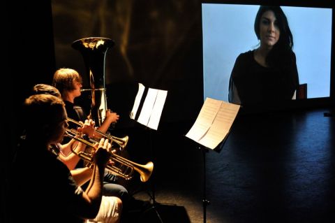 Erst lassen vier Blechbläser des Mannheimer Jugendblasorchesters Bachs Choräle erklingen. Dann treten in schauderhaften Masken acht Schüler und Schülerinnen der 9.Klasse der Kerschensteiner Werkrealschule in Mannheim-Schönau aus dem Dunkel. Doch schon in der nächsten Szene ziehen die Performer ihre Masken vom Kopf und werfen sie zu Boden. Einzeln treten sie ans Mikrofon im Vordergrund und schildern aus der Erinnerung Szenen aus Horrorfilmen. Nur eine Künstlerin erklärt, sie schaue keine Horrorfilme, weil sie ihr nicht gut tun. Und ein anderer tritt ans Mikro, starrt aufs Publikum und schweigt. Das ist eindrucksvoll als Einstieg und führt unmittelbar ins Thema. Denn wie auch der Titel des Stücks nahe legt, geht es im „Schönauer Requiem“ um den Tod. Aber eben nicht im allgemeinen Sinne, sondern ganz persönlich. Wolfgang Sautermeister beschäftigt sich als Performance- Künstler mit Biografien. In dem Theaterprojekt stand daher das Umfeld der Schüler, ihre eigene Geschichte im Vordergrund. Schönau gehört, was Kriminalität und Gewalt betrifft, zu Mannheims Brennpunkten. Im Alltagsleben der Jugendlichen spielen diese Faktoren daher ganz konkret eine Rolle. Sie finden eben nicht nur in Form von Horrorfilmen Eingang in die Wahrnehmung, sie sind vielmehr in ihrer Wirklichkeit verankert.