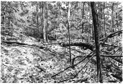 Der Spaziergang führt hinein in das Bild, mitten in den Wald. Die eigenen Schritte lassen trockene Blätter knistern und Äste knacken. Sonst ist kein Laut zu hören. Es ist windstill. Keine Tiere sind zu sehen, keine Vögel zu hören. So detailreich sind Conor Stechschultes Zeichnungen, dass sie den Betrachter direkt in seinen Wald aus feinen Federstrichen führen. In einen schönen, etwas unheimlichen Wald. „Diese Arbeit war die Initialzündung“, sagt Tilo Schwarz. „Ich finde es unglaublich spannend, wie Conor Stechschulte eine Geschichte ganz ohne Protagonist erzählt.“ Sein Comic „Silence Country“ zeigt einen Spaziergang durch den Wald – aus der Sicht des Betrachters. Es ist der Wald selbst, der bei ihm erzählt. Sein Comic war der Anstoß für Schwarz, sich näher mit dem Hintergrund von Comics zu befassen, mit Räumen und Umgebungen. Und daraus entstand „Talking Territories“, die vierte Comic-Ausstellung, die Schwarz für das Mannheimer Künstlerhaus Zeitraumexit kuratiert und die heute Abend eröffnet wird.