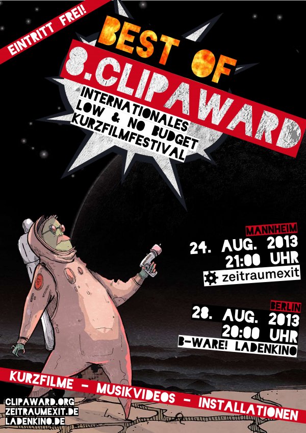 Unsere Freunde vom Internationalen Low & No Budget Kurzfilmfestival Clipaward kommen mal wieder vorbei. Diesmal nicht, um Bühnenelemente und Laminiergerät zu entführen, sondern für ein großes DANKESCHÖN an ihre Freunde & Fans.