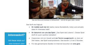 Leider kann das Spiel nicht in Präsenz stattfinden. Daher gibt es ab Freitag, 30. April, die Möglichkeit Das Leben Spielen online zu spielen - oder als Zuschauer*in digital teilzunehmen. Eine lebendige Spielfigur aus unserem Team ist vor Ort und beschreitet das Spielfeld stellvertretend.