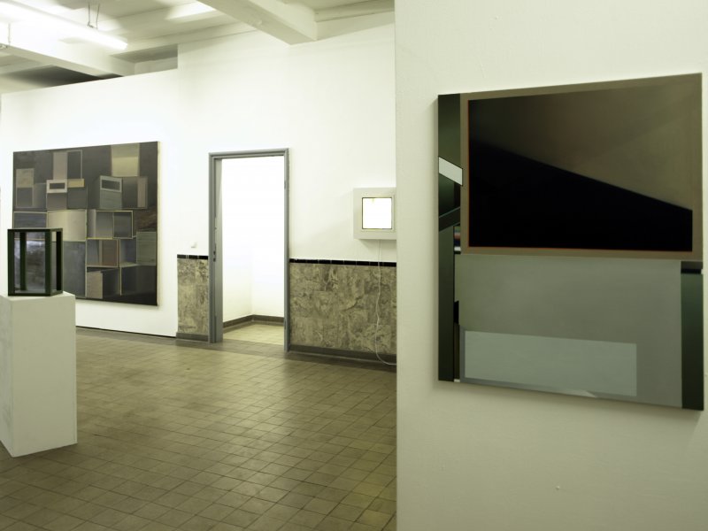 Enrico Bachs Ölgemälde eröffnen die Diskussion; Objekte von Chul-Hyun Ahn und Markus Zimmermann kippen faktische räumliche Konstruktionen; Matt Calderwood und Annabel Lange verhandeln den White Cube als illusorische Oberfläche der Moderne; Joe Merell führt den Stadtraum auf seine Zeichenhaftigkeit zurück; Andreas Lorenschats Installation schließlich gelangt zur Frage, wie die Bildbeschreibung zum Bildraum werden kann.