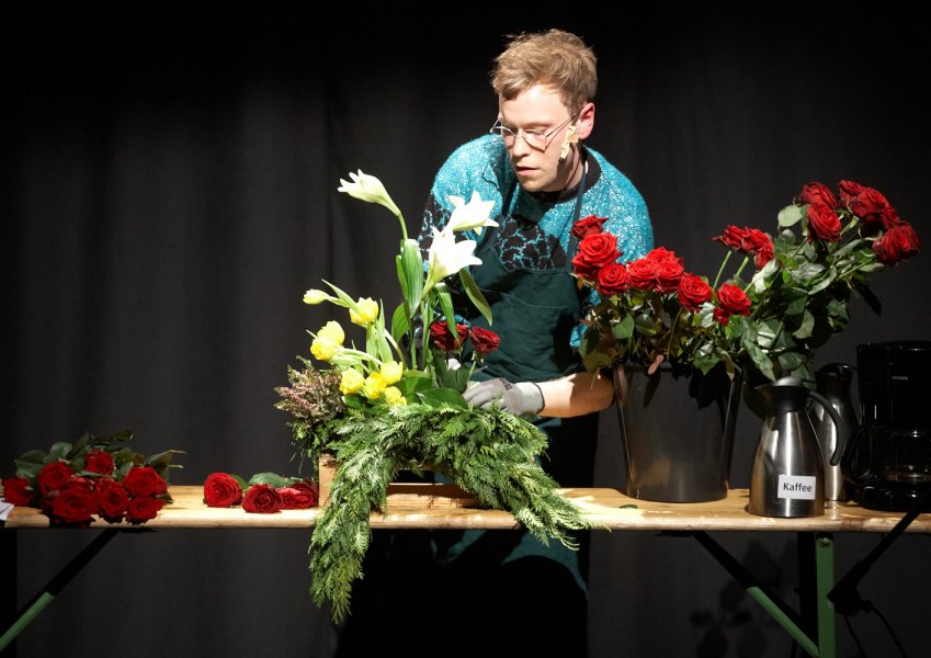 Seven pieces of young talents from all over Europe at "frisch eingetroffen" (just in) festival: Aline Benecke (“picture this…Orientalism at its best”) makes up her Oriental roman-fleuve. Andrés Galeano (“Cue&Review”) draws inspiration from songbirds. Costas Kekis and Eve Chariatte (“Ultra XYX”) wear queer costumes on a delicate set, while Hendrik Quast and Maika Knoblich (Trauer tragen) wear mourning. Markus Keim and Beate Hecker go on "Terrain Vague" looking for the gaps in human perception and Irene Accardo, IVONA Sijakovic bring the past into the present in "2111 - a time capsule", to obliterate it there permanently. Peter Mills and Julia Hannukainen finally get a DVD with an enigmatic note saying "No choice, don't of watch this".