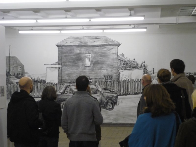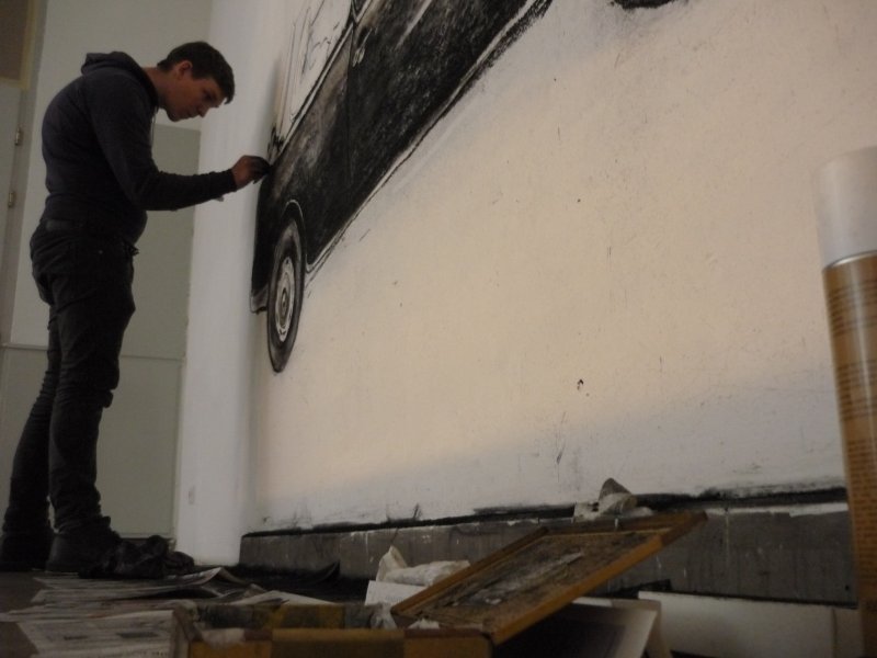 Den Ausstellungsteilnehmer Ward Zwart konnte er für eine besondere Auseinandersetzung mit dem Thema gewinnen: Der Belgier gestaltet eigens für „Talking Territories“ eine Wandarbeit und verwischt auf diese Weise die Grenzen zwischen ausgestelltem Raum und Ausstellungsraum.